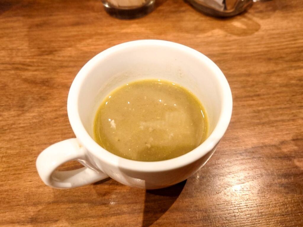 木曜日のランチタイムに一人で予約訪問しました。店内には以前紹介したとおりゆったりしたソファ席があり心地よい雰囲気が漂います。この日は11:55に入店し、一人で予約していたためすぐに席に案内されました。11:58に注文を済ませたところ、わずか4分後の12:02にはまずスープと瀬戸田レモネードが運ばれてきました。