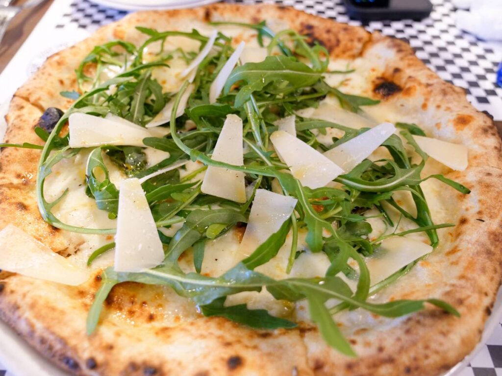 チーズの塩気と、ルーコラのほろ苦さが合わさって「大人の一枚」って感じ。
